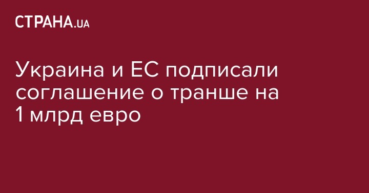Украина и Евросоюз подписали соглашение о привлечении средств четвертой программы макрофинансовой помощи в размере 1 миллиард евро. Об этом сообщил президент Петр Порошенко.