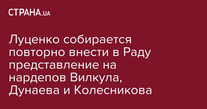 Генеральный прокурор Украины Юрий Луценко намерен повторно внести в Верховную Раду представление о даче согласия на привлечение к уголовной ответственности сопредседателя фракции "Оппозиционный блок" Александра Вилкула и народных депутатов из этой фракции Дмитрия Колесникова и Сергея Дунаева.