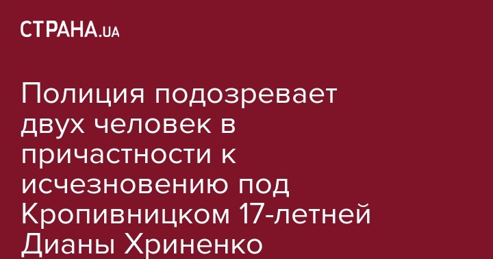 Полиция подозревает двух человек в причастности к исчезновению под Кропивницком 17-летней Дианы Хриненко