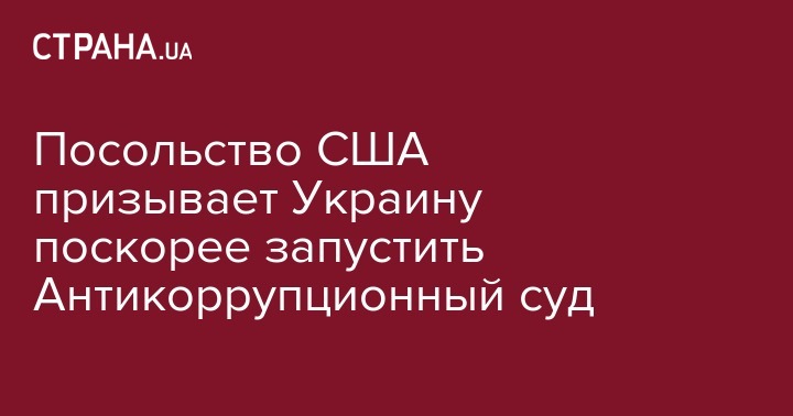 Посольство США призывает украинскую власть принять все необходимые меры для успешного запуска Высшего антикоррупционного суда. Об этом говорится в сообщении посольства в Twitter.