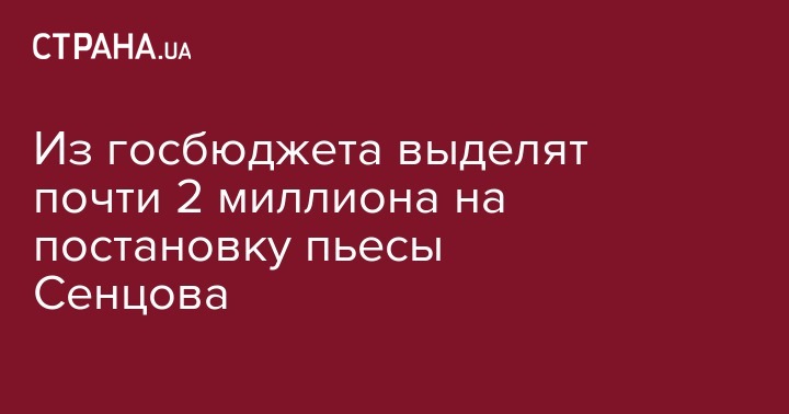 Из государственного бюджета Украины выделят 1,9 млн гривен на поставку пьесы "Номера" украинского режиссера, политзаключенного Кремля Олега Сенцова. Об этом передает "Громадське".