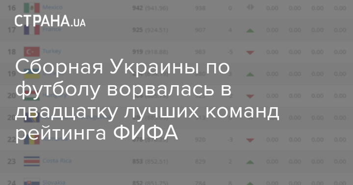 Лидерами рейтинга остаются Аргентина и Бельгия. Украинская же команда улучшила свой рейтинг сразу на три позиции: имея в своем активе 894 зачетных пункта, она ворвалась в двадцатку лучших, переместившись на 19-е место!