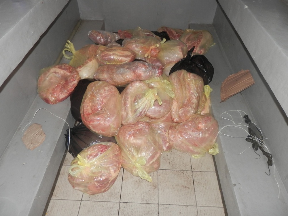 "В пункт пропуска "Грушев" прибыл микроавтобус "Renault" под управлением нашей соотечественницы. Женщина мастерски скрыла 396 килограммов свежей свинины в конструктивных особенностях транспортного средства, а именно в днище авто" – отмечают в Госпогранслужбе.