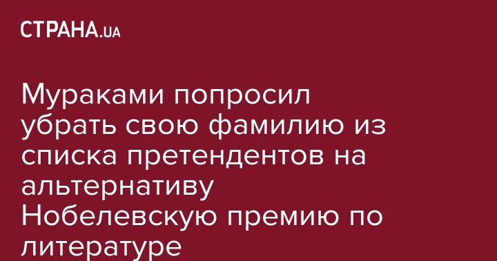 "Японский автор Харуки Мураками попросил изъять его кандидатуру из списка номинантов на новую награду, которая заменила отсроченную Нобелевскую премию по литературе", - говорится в сообщении.