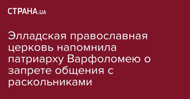 Элладская православная церковь напомнила патриарху Варфоломею о запрете общения с раскольниками
