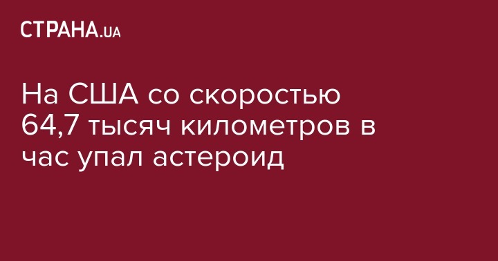 На США со скоростью 64,7 тысяч километров в час упал астероид