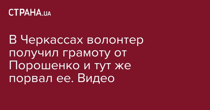 Черкасский волонтер Ярослав Коваленко разорвал грамоту от президента Украины на глазах у председателя облгосадминистрации. Об этом в понедельник, 17 сентября, передает местное издание Про все.