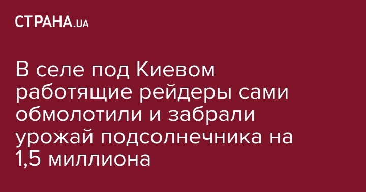 В селе Сидоры под Киевом группа из 40 вооруженных молодых людей спортивного телосложения 15 сентября зашла на поле, обмолотила около 30 га подсолнечника и собрала урожая на 1,5 миллиона гривень. Об этом сообщает пресс-служба Всеукраинского аграрного совета.