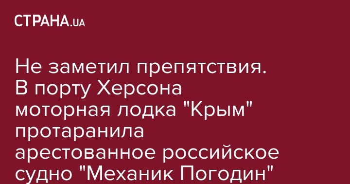 Инцидент произошел вечером 16 сентября в херсонской Нефтегавани. Около 20:00 моторная лодка под названием "Крым" протаранила пришвартованное там арестованное российское судно "Механик Погодин". Об этом пишет "Новый день".