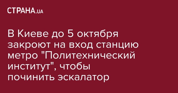В Киеве до 5 октября закроют на вход станцию метро "Политехнический институт", чтобы починить эскалатор
