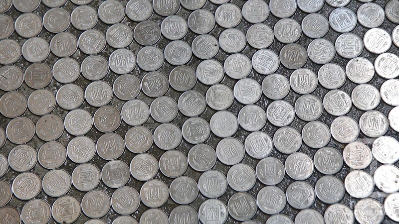 Работал над проектом в классе только один мастер и каждую монету он приклеивал отдельно. Поскольку такие "пятаки" выходят их оборота, то закончить оригинальный ремонт пока не смогли: устелили ими только две трети класса, а планируется сделать несколько слоев. Отметим, что пол выложен таким образом, что виден только аверс монеты - с гербом Украины.