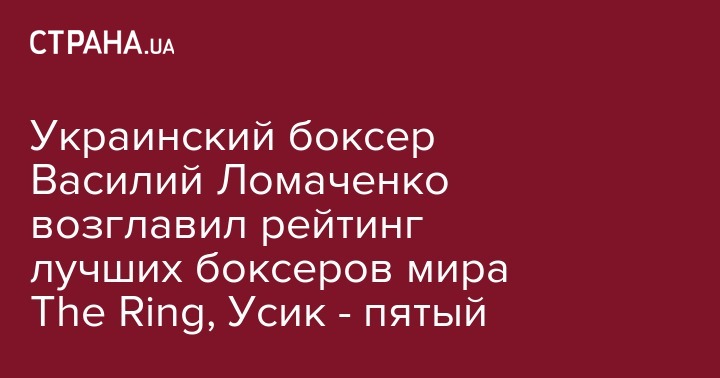 Американский журнал "The Ring" поставил во главе обновленного рейтинга лучших боксеров мира, независимо от весовой категории, чемпиона в легком весе по версии WBA Василия Ломаченко.
