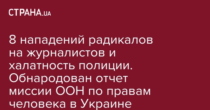 За три месяца в Украине группы праворадикалов 8 раз нападали на журналистов, адвокатов и представителей национальных меньшинств. Об этом на брифинге 19 сентября рассказала председатель мониторинговой миссии ООН по правам человека в Украине Фиона Фрейзер, пишет Украинская правда.