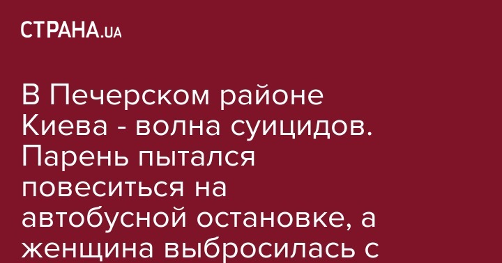В Печерском районе Киева - волна суицидов. Парень пытался повеситься на автобусной остановке, а женщина выбросилась с балкона