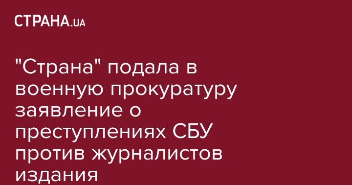 В связи с этим, "Страна" требует внести в Единый реестр досудебных расследований сведения о совершении сотрудниками Службы безопасности Украины уголовных правонарушений, предусмотренных частью третьей статьи 171 "Воспрепятствование законной профессиональной деятельности журналистов" УК Украины, частью первой статьи 345-1 "Угроза или насилие в отношении журналиста", частью второй статьи 365 "Превышение власти или служебных полномочий работником правоохранительного органа" УК Украины.