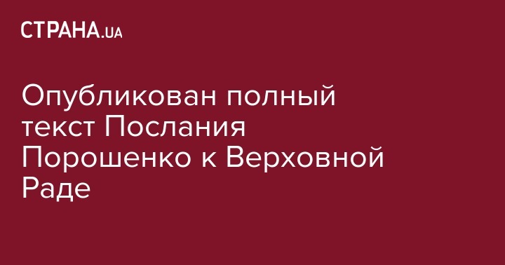 Опубликован полный текст Послания Порошенко к Верховной Раде