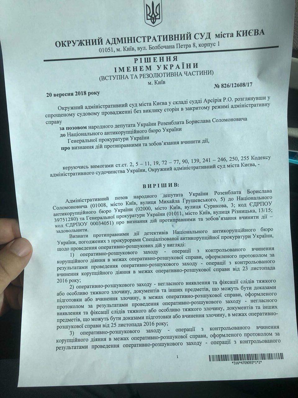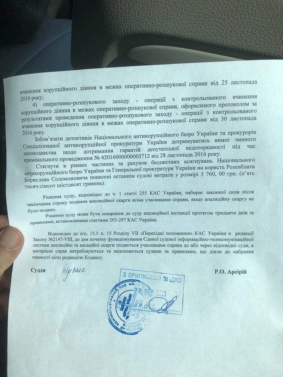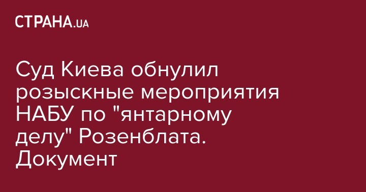 Суд Киева обнулил розыскные мероприятия НАБУ по "янтарному делу" Розенблата. Документ