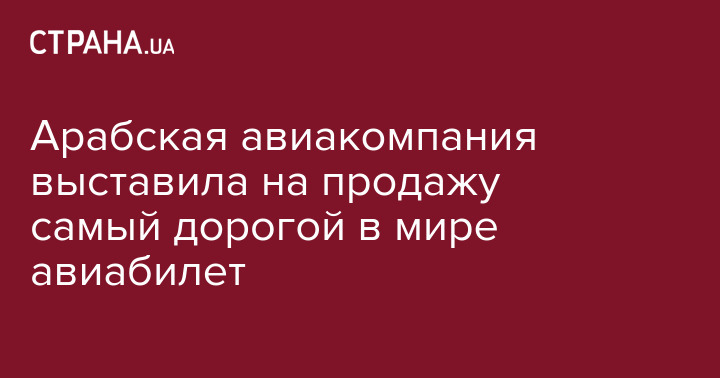 Авиакомпания Etihad Airways, национальная авиакомпания Объединённых Арабских Эмиратов, выставила на продажу самый дорогой в мире билет на самолет. Об этом сообщает Daily Mail.
