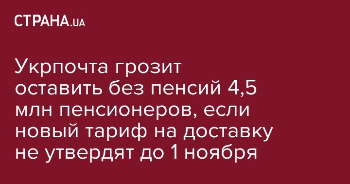 ПАО "Укрпошта" намерено прекратить доставку пенсий, если новый тариф не будет утвержден до 1 ноября 2018 года. Об этом сообщил генеральный директор "Укрпошты" Игорь Смелянский, передает Интерфакс-Украина.