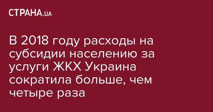 В 2018 году расходы на субсидии населению за услуги ЖКХ Украина сократила больше, чем четыре раза