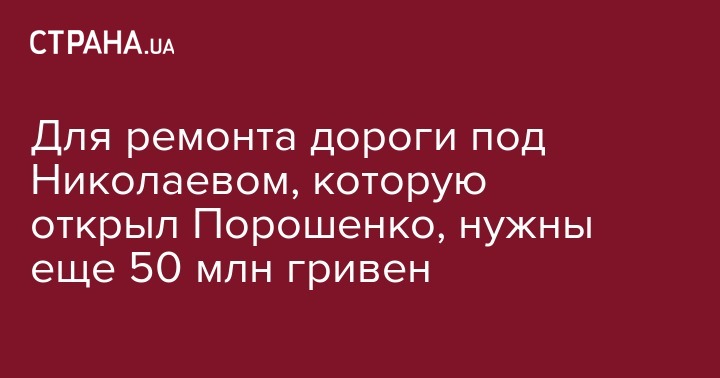 Для завершения ремонта трассы Т-15-08 "Калиновка-Снигиревка" в Николаевской области необходимо почти 50 млн грн, сообщил во время заседания Комитета Верховной Рады по вопросам бюджета начальник Службы автодорог Николаевской области Андрей Максименко, пишет УНИАН.