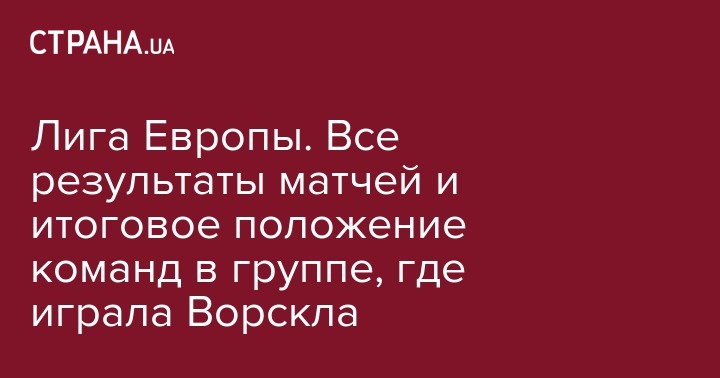 Лига Европы. Все результаты матчей и итоговое положение команд в группе, где играла Ворскла