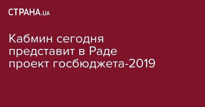 Кабмин сегодня представит в Раде проект госбюджета-2019