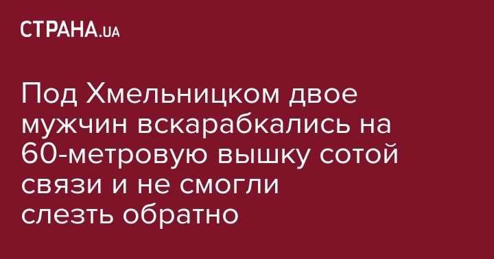 "21 сентября в 17:23 в службу спасения "101" позвонил житель пгт Войтовцы Волочисского района Хмельницкой области и сообщил о том, что на башни сотовой связи высотой 60 метров находятся два человека, которые не могут самостоятельно слезть", - сказано в сообщении.