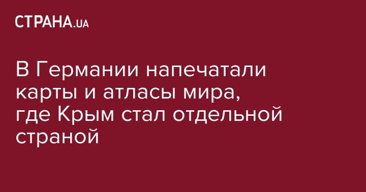 Немецкая издательская группа Mair Dumont выпустила новые атласы Украины, Европы и мира, в которых аннексированный Крым обозначен как отдельная страна. Об этом сообщает "Европейская правда" со ссылкой на читателя из Германии.
