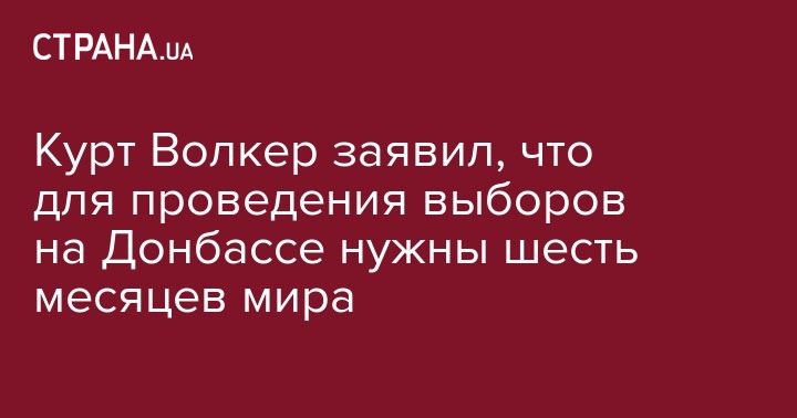 Для того, чтобы можно было провести новые выборы на Донбассе, необходимо как минимум шесть месяцев мира. Об этом заявил спецпредставитель Госдепартамента США по вопросам Украины Курт Волкер в интервью изданию "Эхо Москвы".