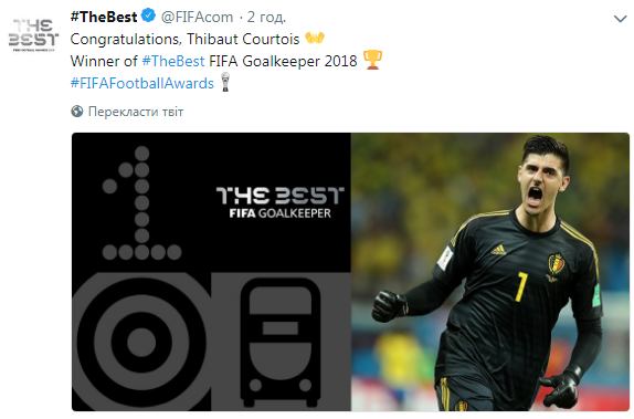 The Best FIFA Football Awards. Лучшим вратарем признан страж ворот Бельгии