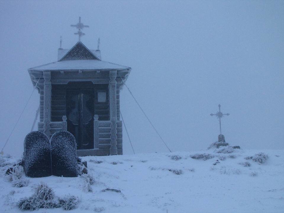 В Карпатах на горе Поп Иван третий день идет снег. Фото