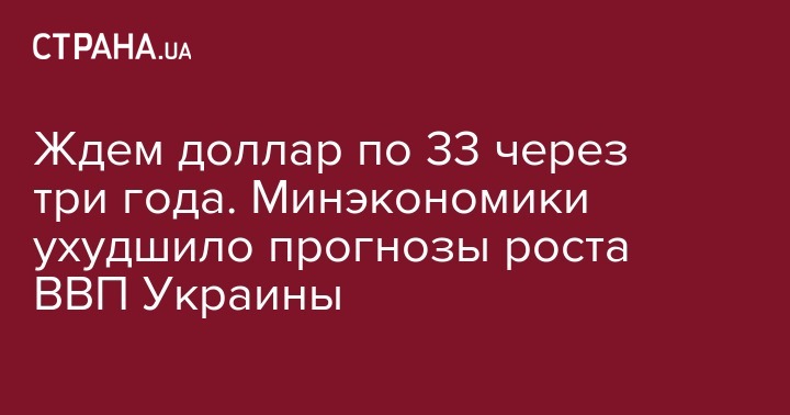 Ждем доллар по 33 через три года. Минэкономики ухудшило прогнозы роста ВВП Украины