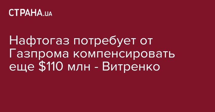 В рамках нового арбитражного разбирательства украинский Нафтогаз требует от Газпрома компенсации разницы стоимости газа в сумме 110 млн долларов. Об этом во вторник, 25 сентября, сообщил главный исполнительный директор Нафтогаза Юрий Витренко, передает УНН.