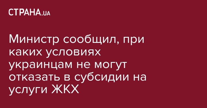 Министр сообщил, при каких условиях украинцам не могут отказать в субсидии на услуги ЖКХ