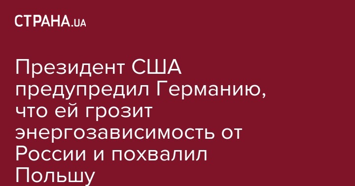 Президент США предупредил Германию, что ей грозит энергозависимость от России и похвалил Польшу