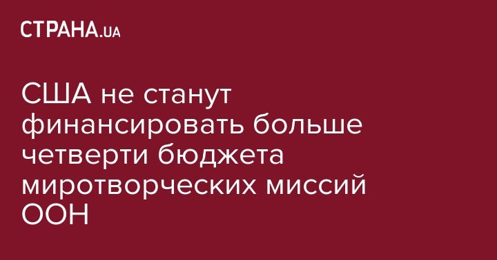 Соединенные Штаты не станут финансировать больше четверти миротворческого бюджета Организации Объединенных Наций (ООН).