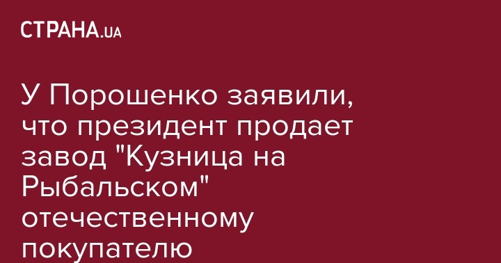 Фонд "Прайм Эссетс Капитал", управляющей активами Петра Порошенко, договорился о продаже завода "Кузница на Рыбальском". Об этом на своей странице в Facebook сообщил пресс-секретарь президента Святослав Цеголко.