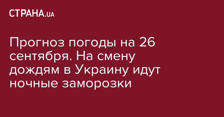 В среду, 26 сентября, в Украине осадков не ожидается. Несмотря на то, что синоптики обещают ночью в среду заморозки, сегодня днем переменная облачность сохранится во всех областях. Правда, температура воздуха не превысит +15 градусов. Об этом сообщает Укргидрометцентр.