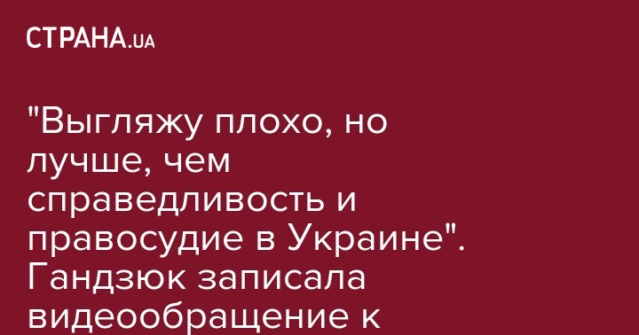 "Выгляжу плохо, но лучше, чем справедливость и правосудие в Украине". Гандзюк записала видеообращение к общественности и власти
