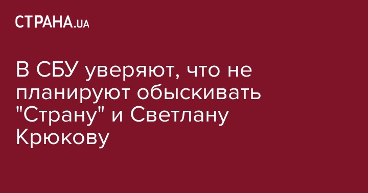 Служба безопасности Украины не подтверждает информацию о готовящихся обысках у заместителя главного редактора издания "Страна" Светланы Крюковой, адвоката Андрея Смирнова, а также в редакции издания.