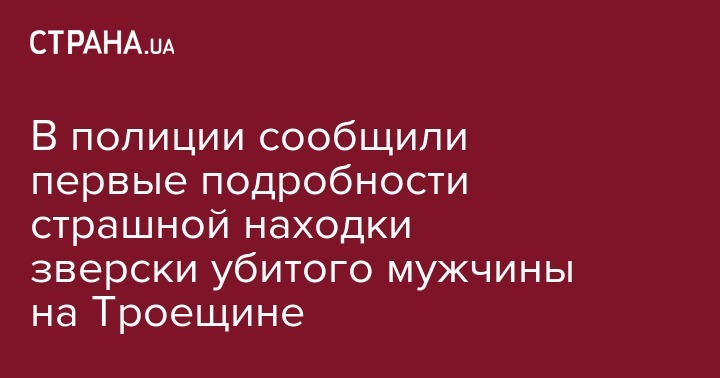 В полиции рассказали подробности о найденном изуродованном трупе на Троещине. Некоторые подробности убийства, озвученные в местных изданиях, оказались неправдивыми. Об этом сообщила заместитель пресс-секретаря Главного управления Национальной полиции в Киеве Яна Неруш, пишет "Информатор".