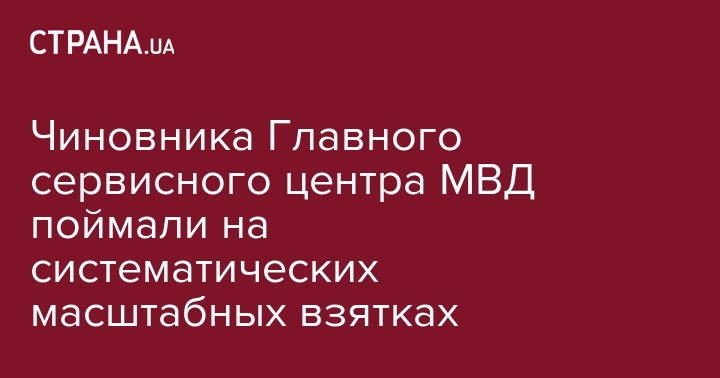 Один из руководителей Главного сервисного центра Министерства внутренних дел задержан по подозрению в систематических взятках. Операцию провели сотрудники Главного управления по борьбе с коррупцией и организованной преступностью СБУ совместно с Генеральной прокуратурой.