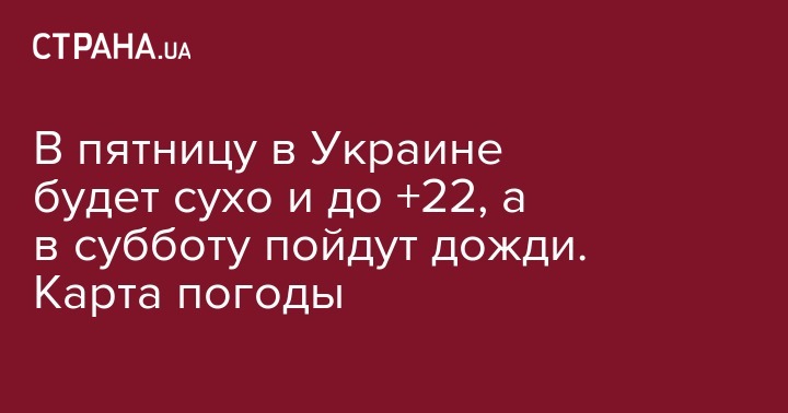 По данным синоптиков, в последний рабочий день недели в Украине осадков не ожидается. Ветер будет юго-западный, 7-12 м/с. Температура ночью 5-10° тепла, днем 16-21°; в Карпатах ночью 2-7 тепла, днем 8-13.