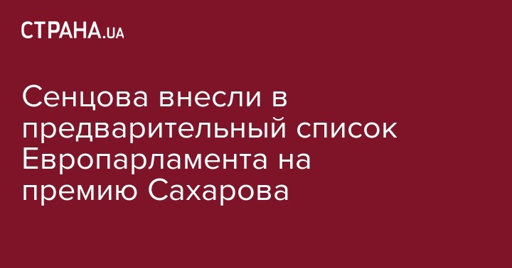 Украинский режиссер Олег Сенцов, который осужден в России по обвинению в терроризме и отбывает 20-летнее заключение в российской колонии, вошел в предварительный список кандидатов на премию Европейского парламента им. Сахарова "За свободу мысли" за 2018 год. Об этом сообщает "Интерфакс Украина".