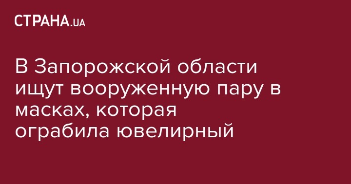 В городе Каменка-Днепровская Запорожской области неизвестные в масках, угрожая пистолетом, ограбили ювелирный магазин, в области введен план "Перехват".