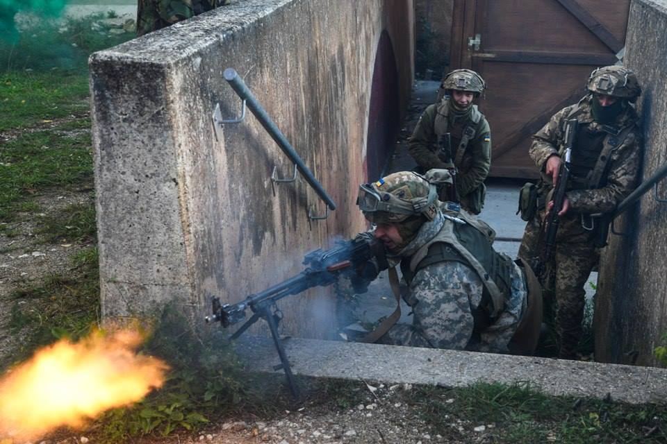 Уточняется, что реальность боевых действий в таком формате имитируется с помощью лазерной системы MILES. На обучении украинские военные действовали в составе многонациональной батальонной тактической группы "Блекфут". Кроме украинцев, в нее вошли две роты американских и рота болгарских военных.