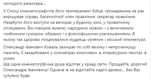 "Болезни мучили его на протяжении последних лет, держался до конца. Теперь он возвращается в ту землю, откуда ушел в большой мир, - село Жердова, на Киевщине", - написал критик.