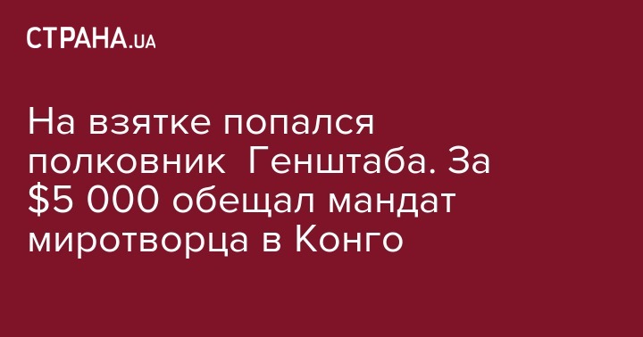 Средства в размере 5 000 долларов США предназначались за влияние на принятие решения должностными лицами Главного штаба ВС Украины о включении военнослужащего в состав сил для проведения миротворческой миссии под эгидой ООН в Демократической Республике Конго", - пояснили в пресс-службе.