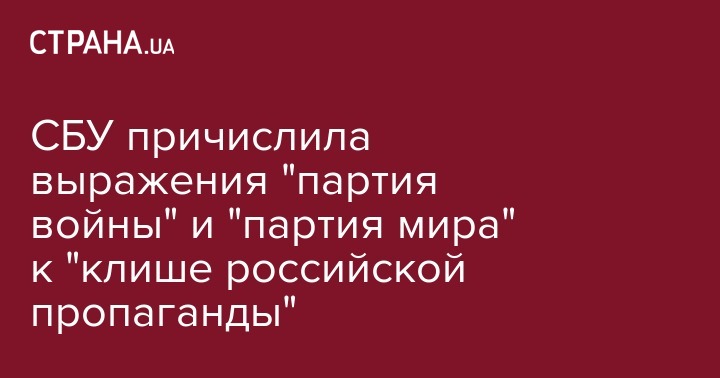 В частности, в СБУ расценивают как "клише российской пропаганды" высказывания "партия войны", "партия мира" и "Россия защищает свои интересы".